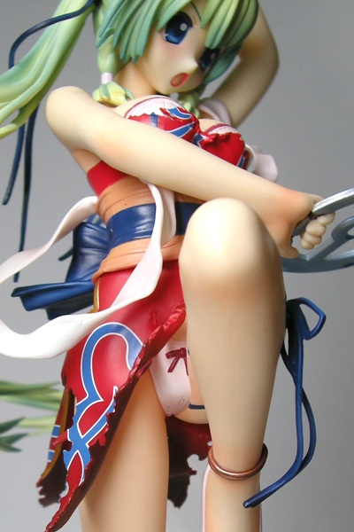 激しい戦闘によるダメージを演出するため、服のダメージverを添付。単にパーツを交換するのではなく服の部分を付け替えるので、服パーツをはずすと下着姿になります。